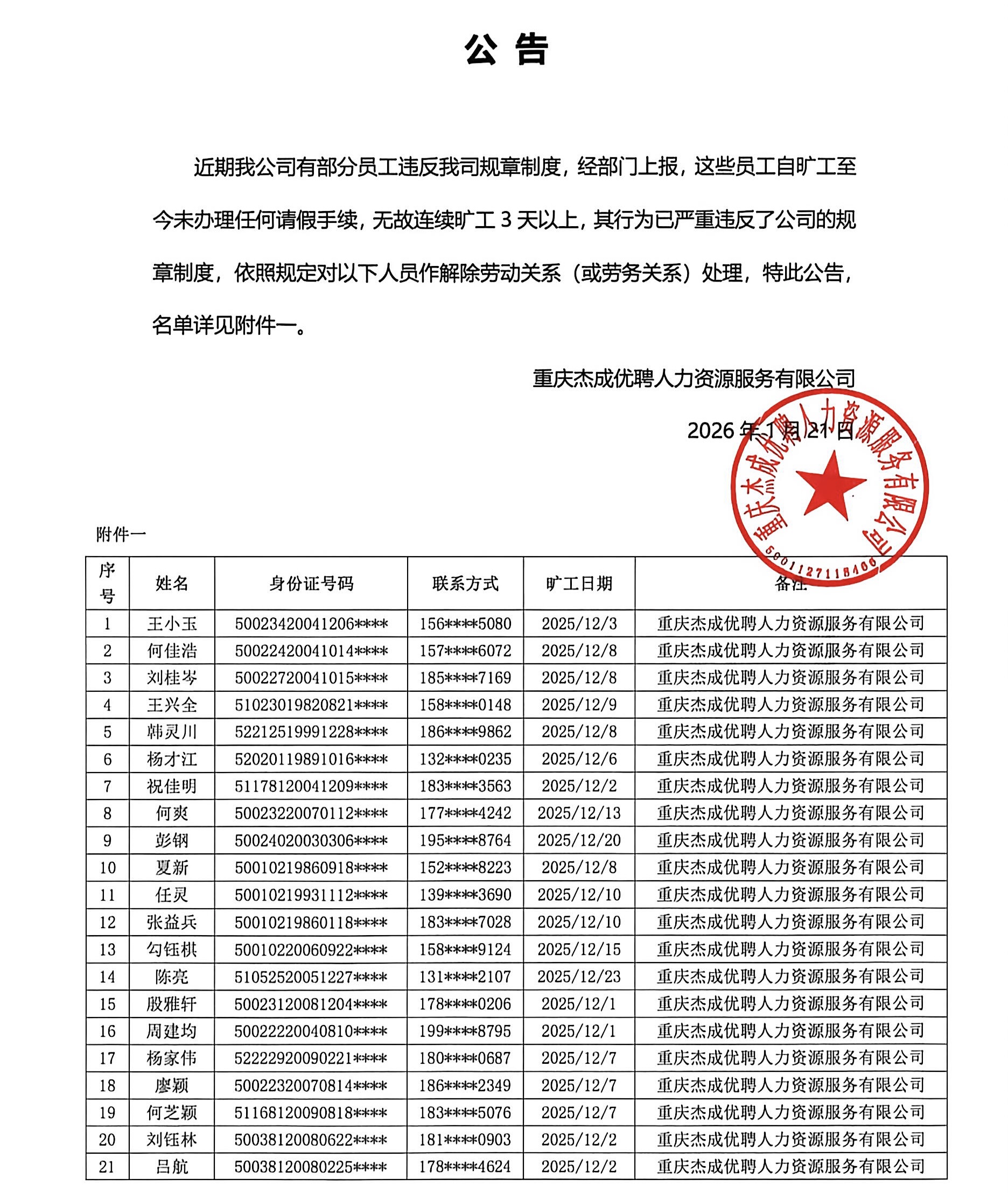 20260102公告【非凡娱乐优聘】